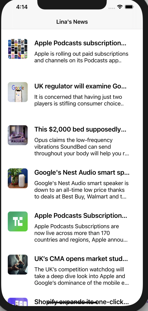 여기서 만드는 앱은 NewsApi를 사용하여 List에 뿌리는 앱이다.