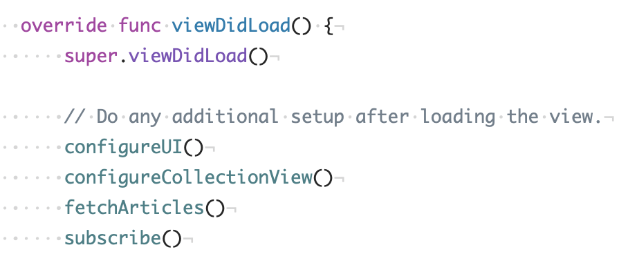 viewDidLoad에서 fetchArticles, subscribe를 호출한다.
