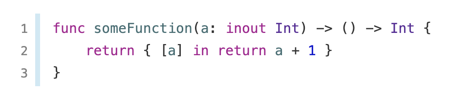 → 위 코드에서는 중첩 함수에서 원래의 a가 변경되지 않도록 캡쳐 리스트를 사용하고 있다.