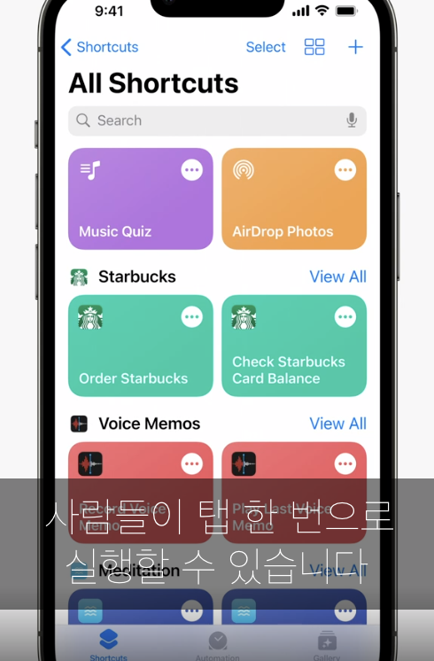 shortCuts 앱에도 나온당.