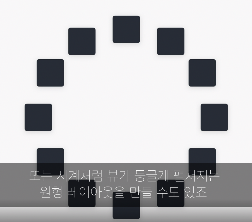 유연한 레이아웃 만들기 가능. 시계모양도 가능