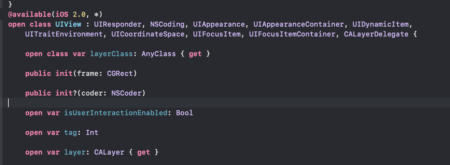 우리가 뭐 쓸때 보면 CGColor, CALayer, UIView.... 이런것들이 있는데 여기서 CG CA 이런건 프레임워크의 이름에서 따온 약자이다. CG: Core Graphics -> CA: Core Animations -> UI: UIKit 순서대로 높은 등급이고, 이는 즉 사용하기 쉽다는 뜻이다. 예를들어, 우리가 고급언어라고 하면 사람이 이해하기 쉬운거, 저급언어라고 하면 컴퓨터가 이해하기 쉬운거.. (010101010....)이지 않는가??